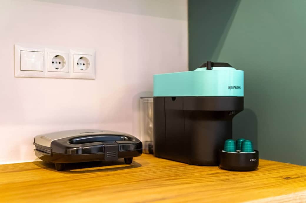 Coffee machine, Kitchen stove, Kitchenette, Oven, Refrigerator, Toaster